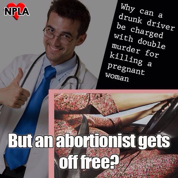 (Traducción) ¿Por qué si un conductor borracho atropella a una mujer embarazada, le acusan de un homicidio doble pero el abortista sale sin cargos?