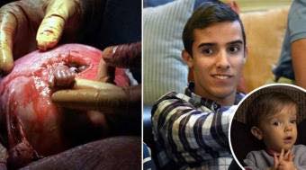 La mano de Samuel sacandola en una operación en la semana 21 de gestación. 18 años después