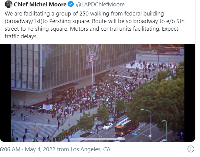 Activistas en favor del aborto hirieron a dos policías de Los Ángeles, rompieron la ventana de un patrullero y agredieron a los activistas provida durante las protestas por la posible anulación de la sentencia que en 1973 legalizó el aborto en Estados Unidos. El jefe del Departamento de Policía de Los Ángeles, Michel Moore informó en Twitter que la protesta de unas 250 personas se realizó el 2 de mayo en la Plaza Pershing del Centro de Los Ángeles, poco después de las 8:00 p.m. (hora local). Los actos vandálicos se produjeron una hora después, cuando la policía recibió la orden de dispersar a los asistentes para liberar el tráfico de esa área. Moore informó que los manifestantes comenzaron a arrojar piedras y botellas y que el primer oficial resultó herido.