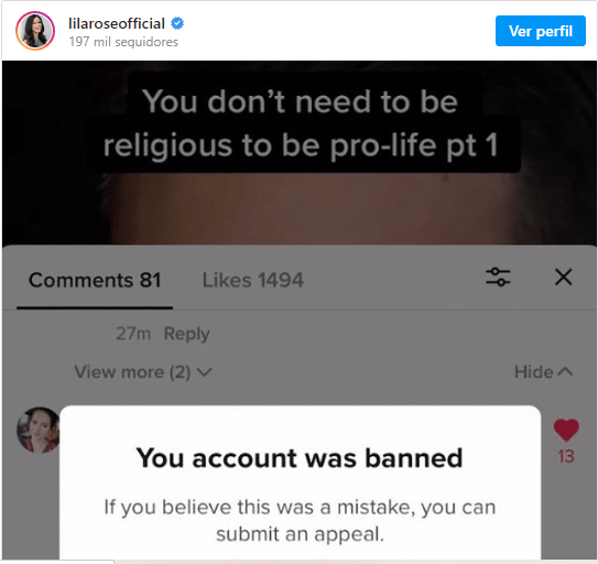 La líder provida Lila Rose, fundadora de Live Action, denunció que su cuenta fue bloqueada por la red social TikTok, que sin embargo permite que se sigan difundiendo anuncios de cuentas promotoras del aborto. A través de Instagram, Rose dijo este 4 de agosto que TikTok «ha bloqueado mi cuenta (Lilaroselife) de la plataforma”, y señaló que la red social bloqueó también los anuncios publicitarios de Live Action.