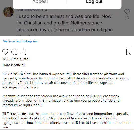 Para la líder provida, que comenzó Live Action a sus 15 años, en 2003, revelando la verdad sobre el aborto, el bloqueo de TikTok “es una censura descaradamente injusta del mensaje provida y pone en peligro vidas humanas”. “Mientras tanto, Planned Parenthood tiene anuncios activos que gastan $20,000 (dólares) cada semana difundiendo desinformación a favor del aborto y pidiendo a los jóvenes que ‘defiendan los derechos reproductivos para todos’”, denunció.